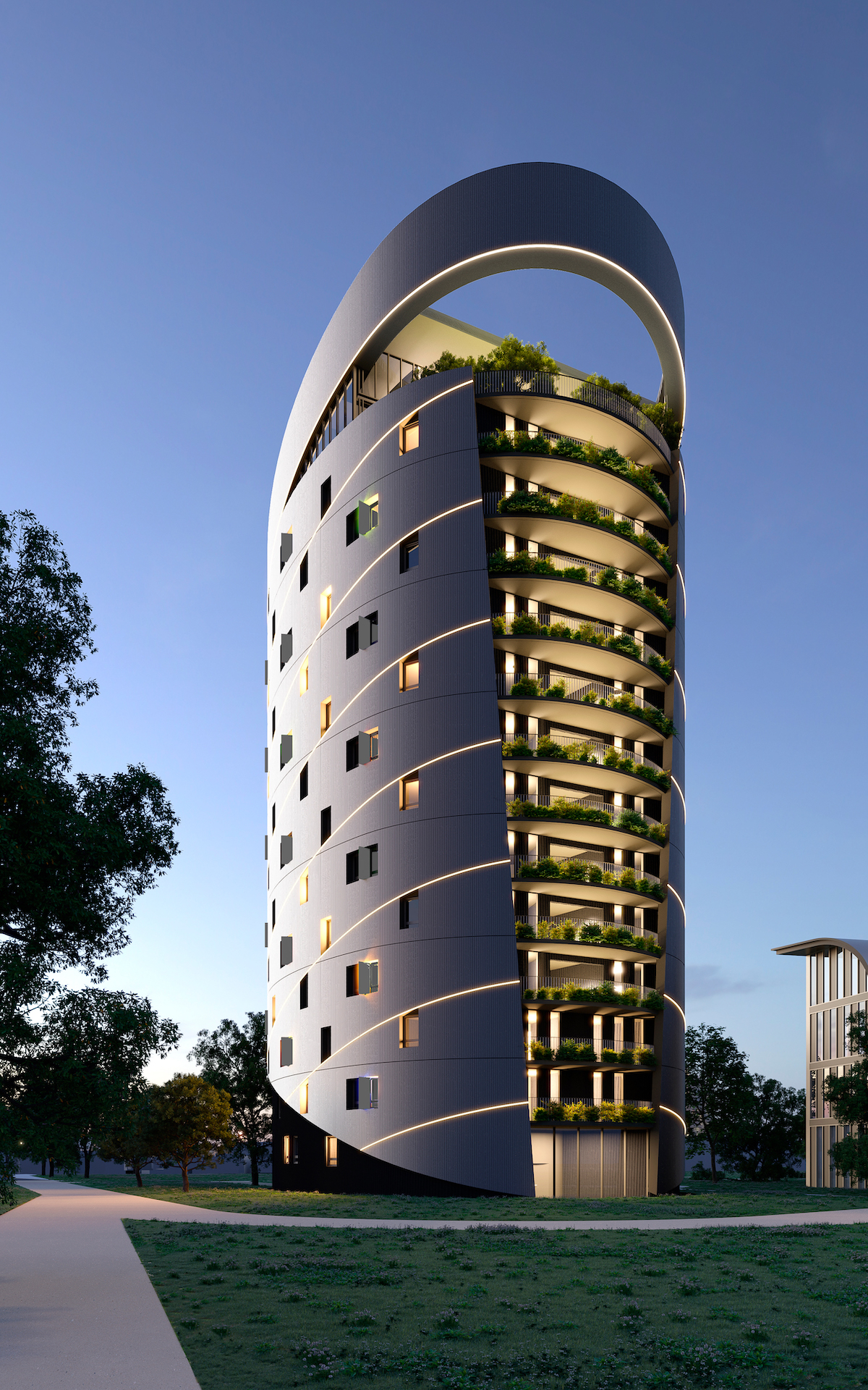 – La première résidence, située dans le même parc que l’école, affirmera sa modernité sous la forme d’un phare tourné vers la Méditerranée, comme un signal qui attire, propice aux échanges, à la connexion et à l’ouverture vers les autres.